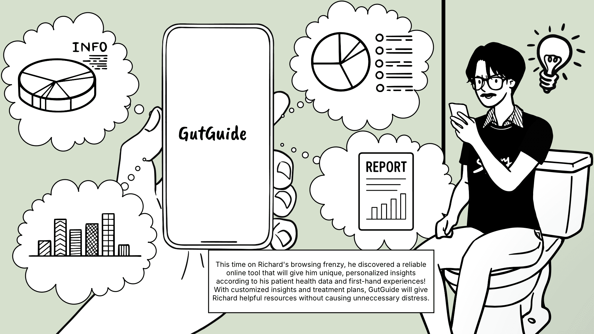 GutGuide's concise input categories decrease decision fatigue.