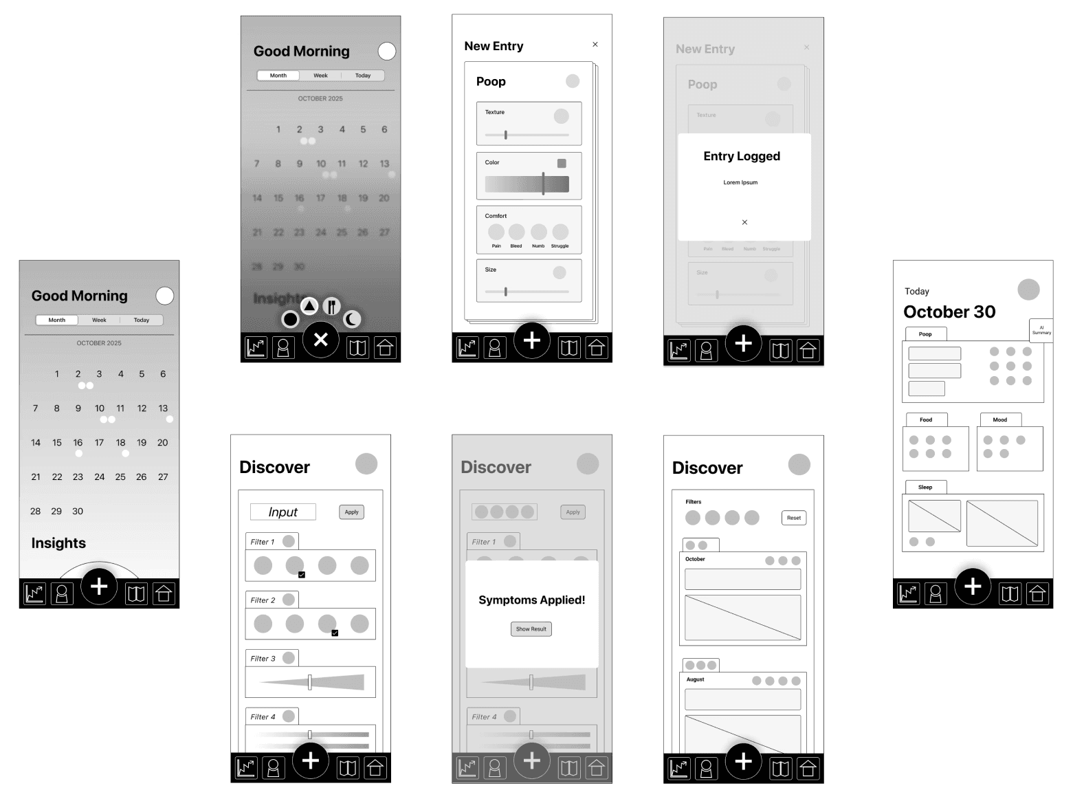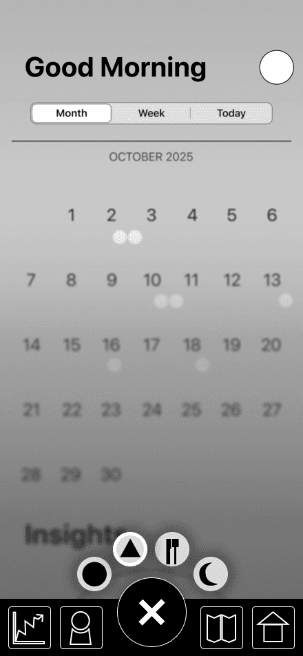 Icons are intentionally ambiguous. Awkwardness wasn't a problem I could fix, instead, I avoided using obvious visuals to accommodate uncomfortableness.